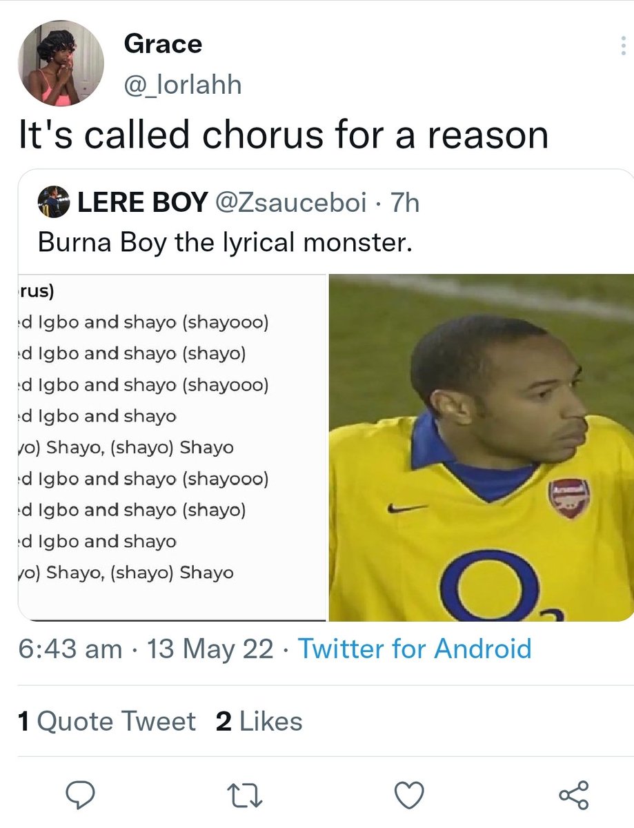 Igbo is Yoruba for weed and shayo stands for alcohol I need Igbo and shayo Shayo I need Igbo and shayo Shayo Burna Boys pain is real.